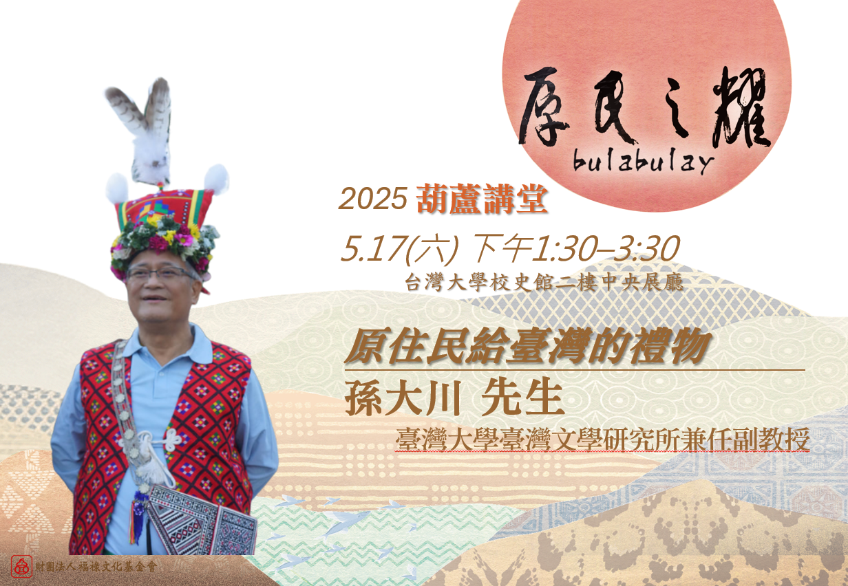 (首展系列六)※講題:原住民給臺灣的禮物※講者:孫大川先生(國立臺灣大學臺灣文學研究所兼任副教授)